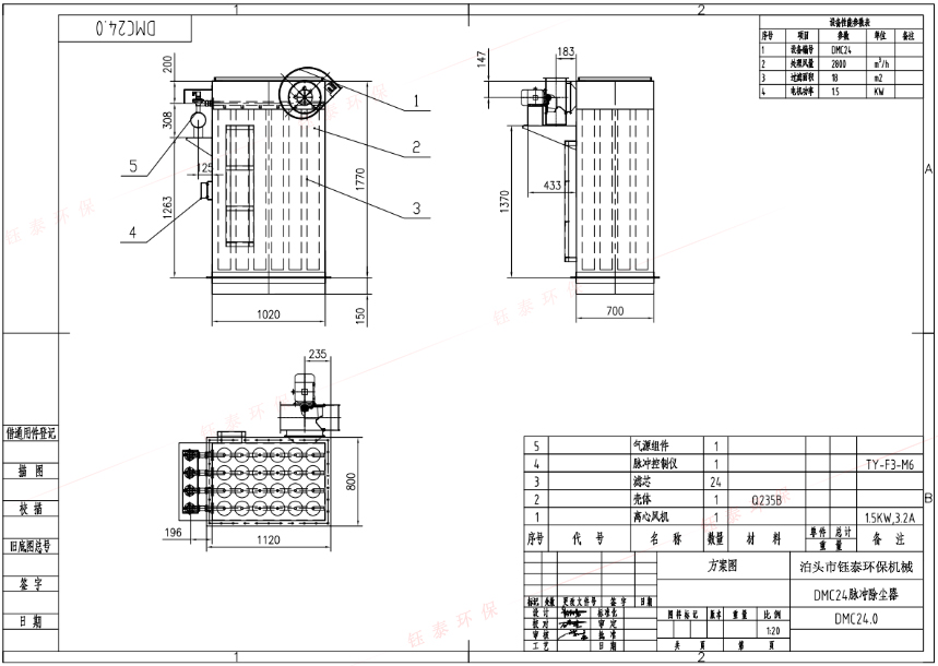 | 設備型號 | 處理風量(m³/h ) | 濾袋數量(只) | 過濾面積(㎡) | 電機功率(Kw) |