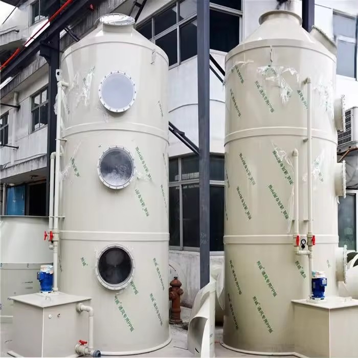 3.化學(xué)吸收劑從塔頂向下噴射,廢氣向上流動(dòng)。廢氣與吸收液完全接觸,并通過反應(yīng)除去。