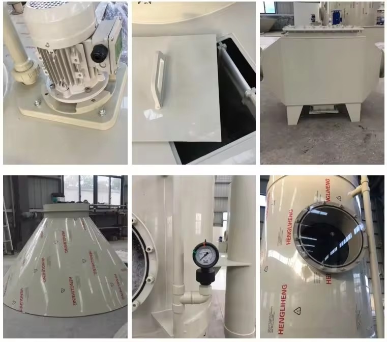 1.噴淋塔體的材料為不銹鋼,鋼板,聚丙烯和玻璃纖維,整體為無分段連接法蘭的纏繞圓柱圓柱體。具體結(jié)構(gòu)由壓力室、儲(chǔ)液罐、填料、噴淋裝置、消泡裝置等組成。
